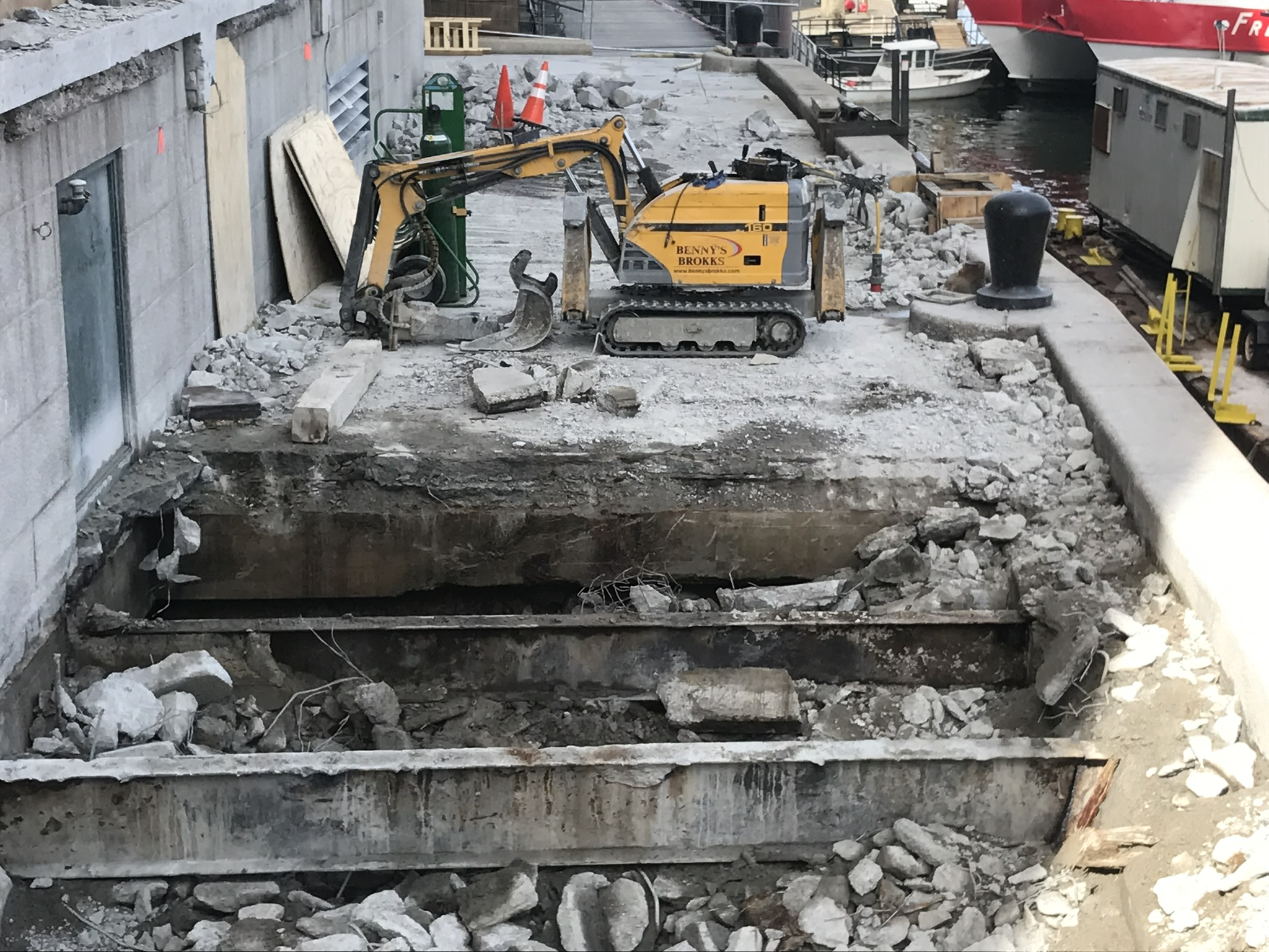 When you need demolition services on the interior of a building, Jack Doherty Contracting offers a great option for breaking thick concrete with great ease using the Brokk, a robotic, electric powered demolition hammer. We have close to a dozen Brokk machines. The Brokk can break thick concrete with ease and it’s fume-free. This makes it possible for business to continue in other parts of the building while the interior demo is being performed.